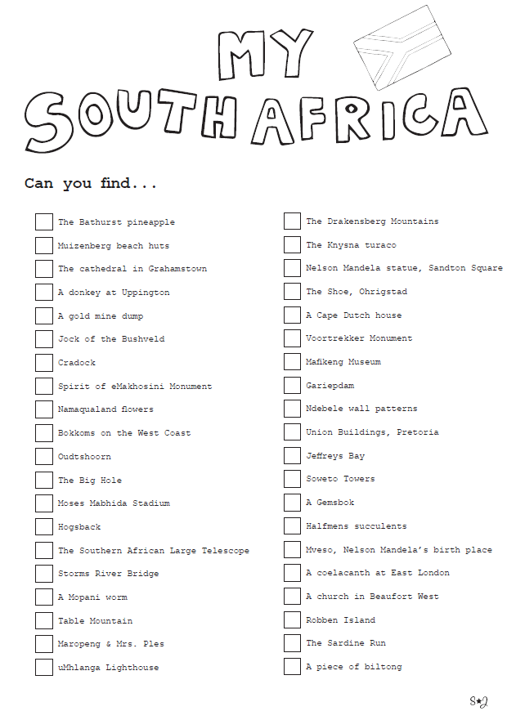Take a creative journey around South Africa with this giant colouring in poster. You’ll find detailed hand-drawn images of important tourist attractions around South Africa.